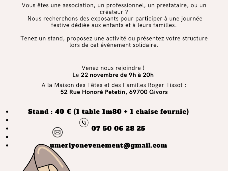 À l’occasion de la Journée des Droits de l’Enfant, venez passer une journée magique en famille ! Dès 9h jusqu’à 20h, découvrez notre petit salon de Noël, où exposants et créateurs locaux vous feront voyager dans l’esprit de Noël avec des idées cadeaux, des créations artisanales et des gourmandises à partager.