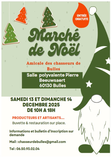 La manifestation se déroulera le Samedi 13 et Dimanche 14 décembre 2025 dans la salle Polyvalente de Bulles (60130)