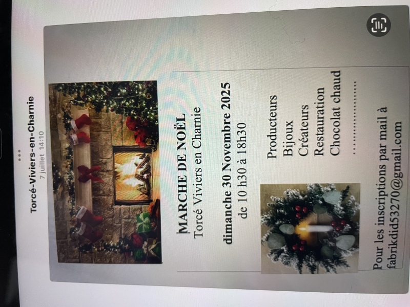 marché de noël 2025 Vous êtes artisan, créateur ou exposant à la recherche d'un événement festif pour présenter vos produits ? Rejoignez-nous pour la 2ème édition du Marché de Noël, qui se tiendra le Samedi 6... Localisation : 53600 CHÂTRES LA FORÊT/EVRON
