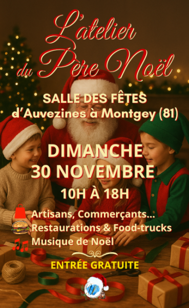 Artisans, créateurs, producteurs locaux… WilaimSon EVENT vous invite à participer à ce bel événement de Noël à la Salle des Fêtes d’Auvezines à Montgey (81) ! OH, OH !! Le Père Noël sera présent !
