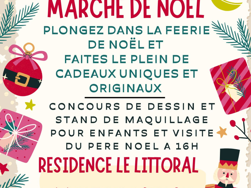 La résidence ouvre ces portes pour son traditionnel marché de noël avec des animations pour enfants gratuites l'après midi (concours de dessin, remise du prix à 16h par le père noël, maquillage) vous découvrirez des stands originaux et partirez avec des cadeaux uniques ouvert à tous, entrée gratuite pour les visiteurs