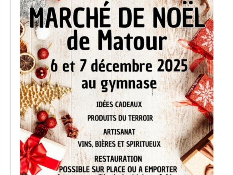 70 producteurs et artisans de qualité venant de toute la France seront présents au Marché de Noël de Matour qui aura lieu les 6 décembre de 14h à 20h et le 7 décembre de 10h à 19h .