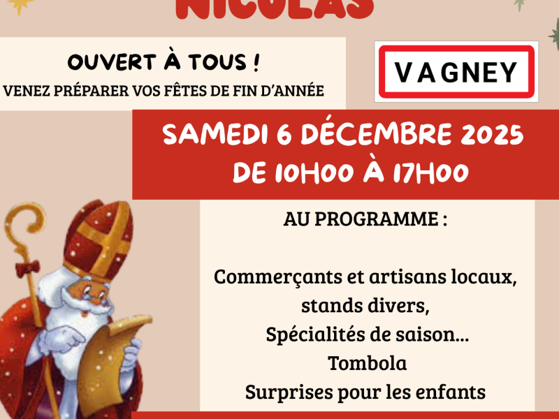 Nous avons le plaisir de vous informer que le Marché de Saint Nicolas revient cette année !L’événement se tiendra le samedi 6 décembre 2025, de 10h à 17h, à l’EHPAD Le Solem – 27 rue Jean Moulin à Vagney.