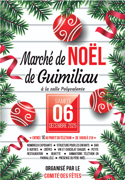 Le Comité des fêtes de Guimiliau organise son traditionnel « Marché de Noël » samedi 6 décembre de 10 h 30 à 21 h à la salle polyvalente de Guimiliau