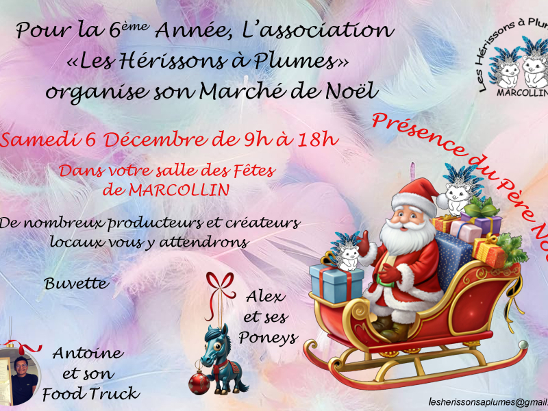 Salle des fêtes de Marcollin, avec la présence du Père Noel, le Food truck d'Antoine, les poneys d'Alex, tombola et de nombreux exposants