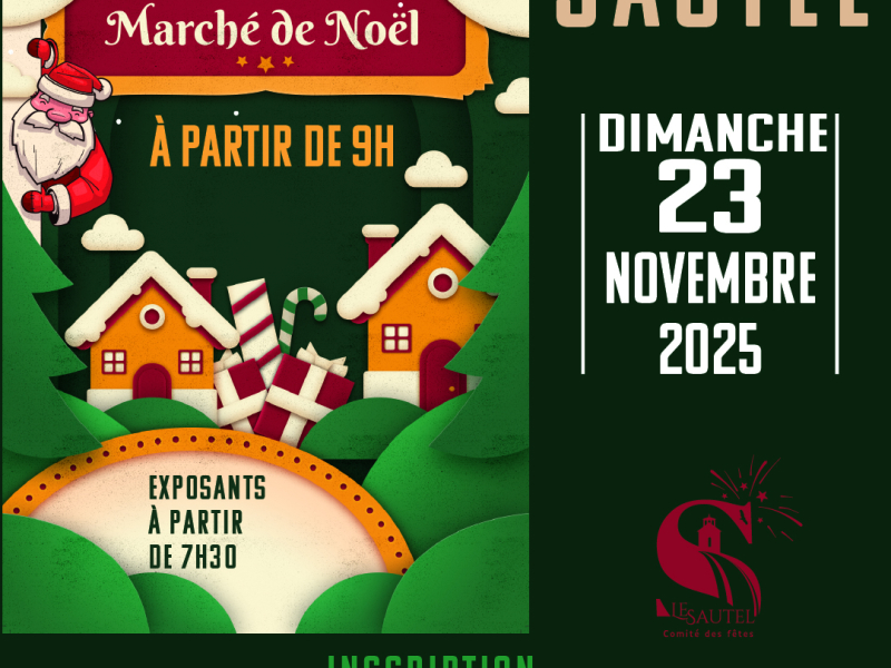 Le 23 novembre 2025, le comité d'animation du Sautel vous présente leur Marché de Noël qui aura lieu à la salle commune de la commune du Sautel 09300. L'heure d'ouverture au public est 9.00 H. L'entrée est GRATUITE. Sur place, vous découvrirez une multitude d’artisans très variés avec de nombreuses idées-cadeaux pour les fêtes de Noël et Nouvel An. Vous découvrirez également des produits du terroir qui feront vibrer vos papilles, Chocolat chaud et vin chaud seront également de la partie. Possibilité de restauration sur place. Nous comptons sur vous pour venir le découvrir, nos nombreux exposants.