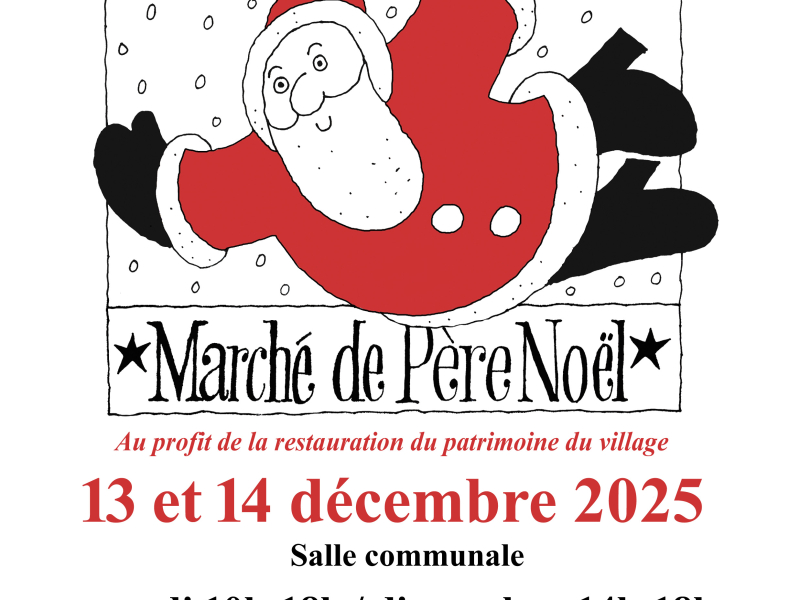 Marché de Noël au profit de la restauration du patrimoine du village. Vente d'objets, tous fabriqués sur place par les habitants de la commune, petit salon de thé, tonneau surprise, tombola.