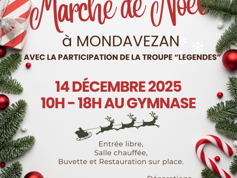 Marché de Noël avec restauration sur place, animation pour enfants, présence du Père noël, spectacle de la troupe "Légendes"