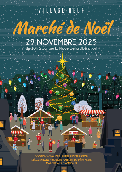 La Commune de Village-Neuf vous invite à son traditionnel Marché de Noël sur la Place de la Libération, en face de la Mairie le samedi 29 novembre 2025 de 10h à 18h.