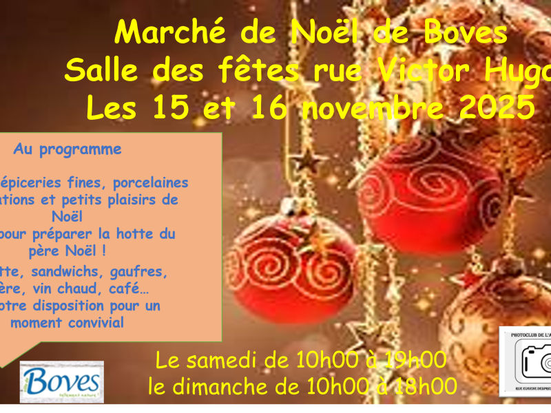 L'association Le Photoclub de l'Avre Bovoise organise son marché de noël à Boves les 15 & 16 novembre dans la salle des fêtes en face de la mairie.