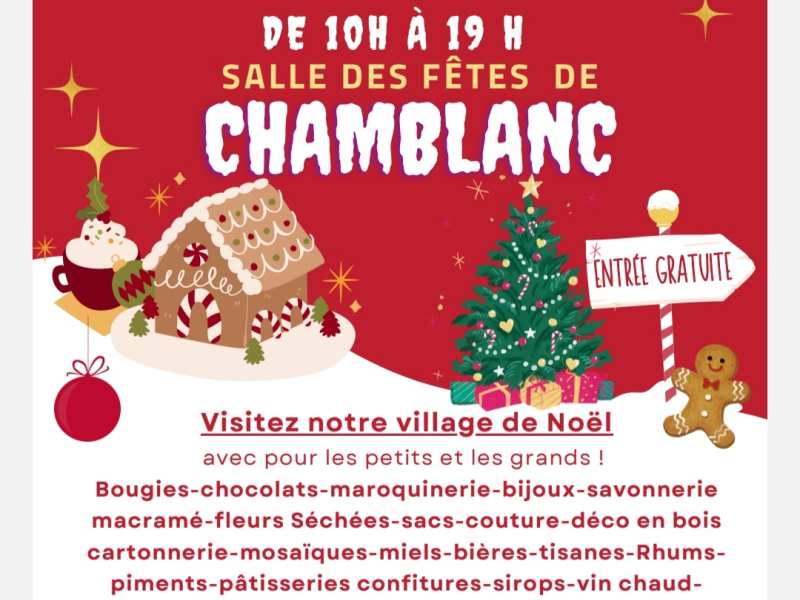 Les Lutins du Chamblanc Dynamic Club sont au travail et préparent un marché de Noël éblouissant et magique dans des Décors et lumières de Noël. De nombreux stands de créateurs, artisans et producteurs divers et très originaux qui permettront aux visiteurs de réaliser leurs achats de cadeaux, décorations, objets d'artisanat, boissons raffinées, vente de sapins. Atelier maquillage pour les enfants, boîte aux lettres au Père Noël qui accueillera les enfants dans son chalet à 11h30 et 15h45 et Julie le Lutin photographe immortalisera la rencontre. Restauration sur place le midi, tartiflette, huîtres, escargots, tartines, soupe, gaufres, vin chaud, chocolat et jus de pommes chauds. Entrée Gratuite.