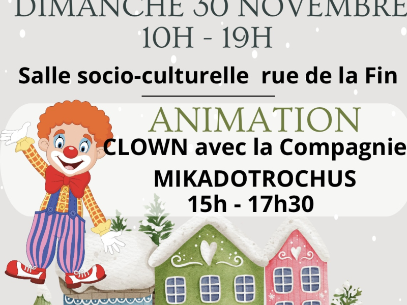 Marché de Noël à la salle socio-culturelle de Lavau de 10 heures à 19h . avec 35 exposants + animation CLOWN avec la compagnie MIKADOTROCHUS de 15 heures à 17h30. Restauration sur place . Tombola .