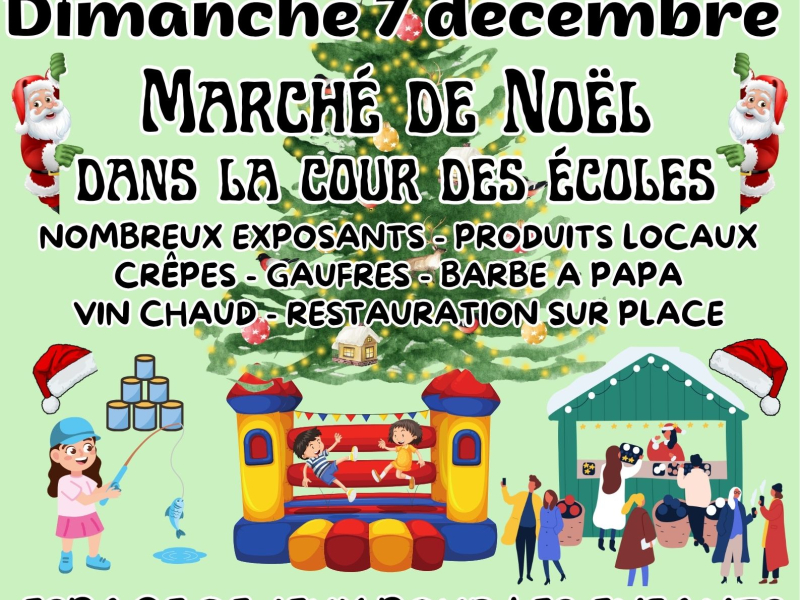 Marché de Noël dans la cour des écoles, espace jeux pour les enfants sécurisé (château gonflable, pêche aux canards, chamboule tout, etc.),
