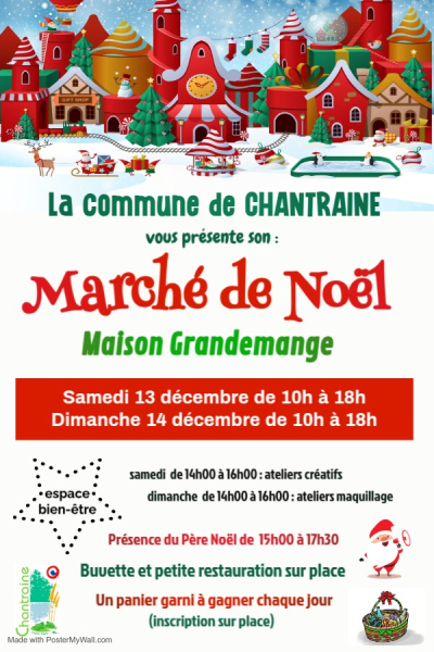 Marché de Noël - Chantraine Le marché de Noël de Chantraine revient les 13 et 14 décembre 2025 !Maison Charles Grandemange de 10h à 18h Venez y découvrir les créations originales de nos exposants. Travail du bois, de la... Localisation : 88000 CHANTRAINE