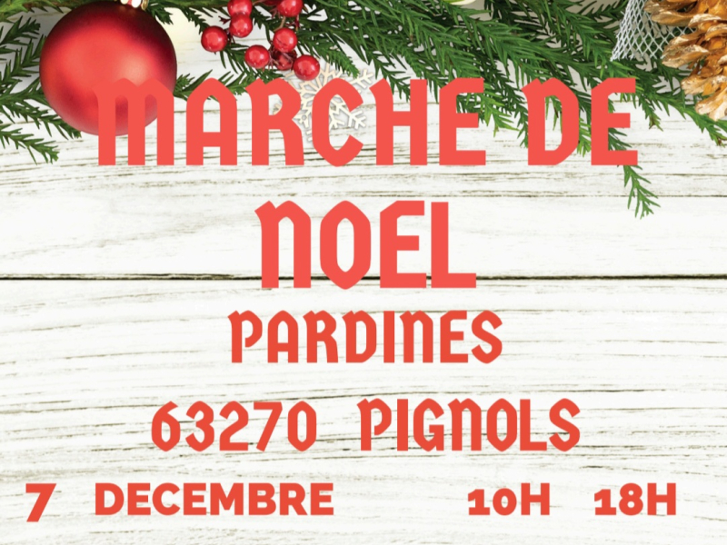 Marché de Noël de Pardines 63270 Marché de Noël Pardines près de Vic-le-Comte Tombola Buvette et restauration : boeuf bourguignon, gratin dauphinois et bien d'autres Visite du père Noël a 11h et 15h30 Localisation : 63270 SALLE DES FÊTES DE PARDINES