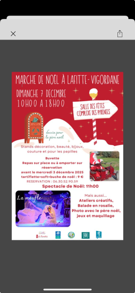 Vous êtes ici : Liste des marchés de Noël > Calendrier des marchés de Noël > MARCHE DE NOEL A LAFITTE VIGORDANE