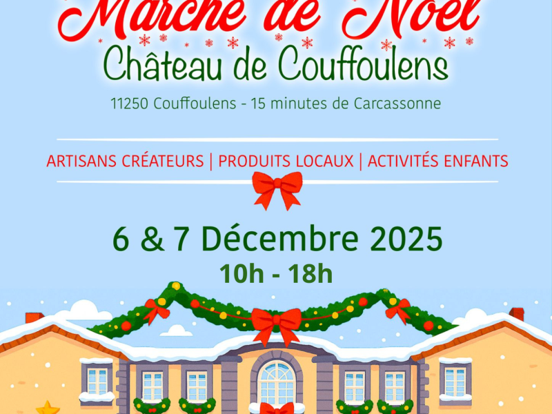 MARCHE DE NOEL 6ème edition & FOIRE AUX VINS LES 6 & 7 DÉCEMBRE 2025 de 10h à 18h au Château de Couffoulens (11250, à 15 minutes de Carcassonne).