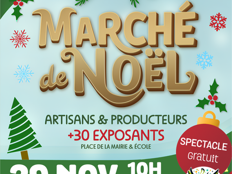 la 5ᵉ édition rassemblera 32 exposants avec balades en calèche (10h–16h), maquillage (10h–19h), atelier peinture à la médiathèque (10h–12h), Père Noël (16h45–18h15), atelier bricolage, vente téléthon et jeux traditionnels (grenouille & bourriche).