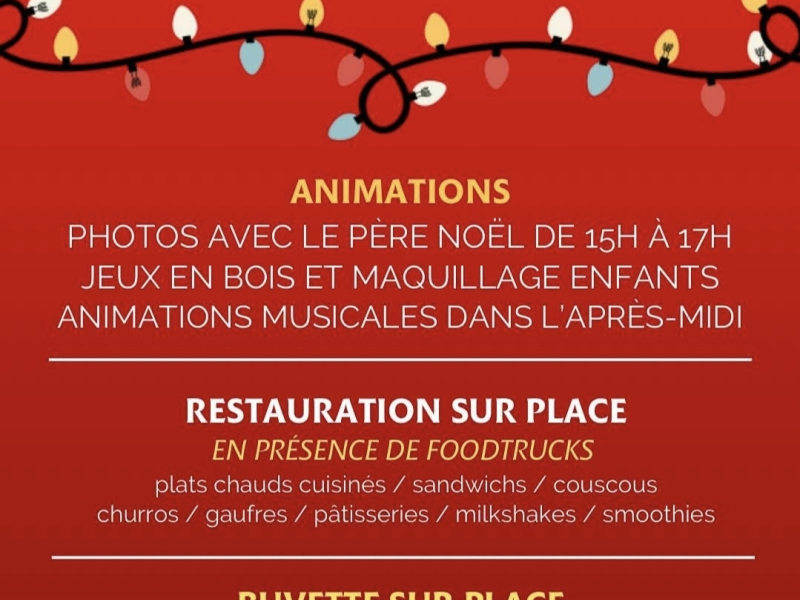 Animations : photo avec le père Noël de 15h à 17h, jeux en bois, maquillage enfants, animations musicales ...