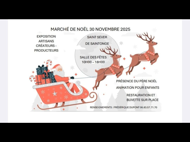 Marché de Noel Marché de créateurs et prestataire locauxAteliers pour les enfants sur le thème de NoelPhoto avec le père NoelRestauration sur place Localisation : 17230 ST OUEN D'AUNIS