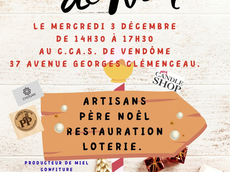 3eme année du marché de Noël au CCAS de Vendôme le mercredi 3 décembre de 14h30 à 17h30, de nombreux artisans locaux . Marché organisé par l' association Smile Vendôme.