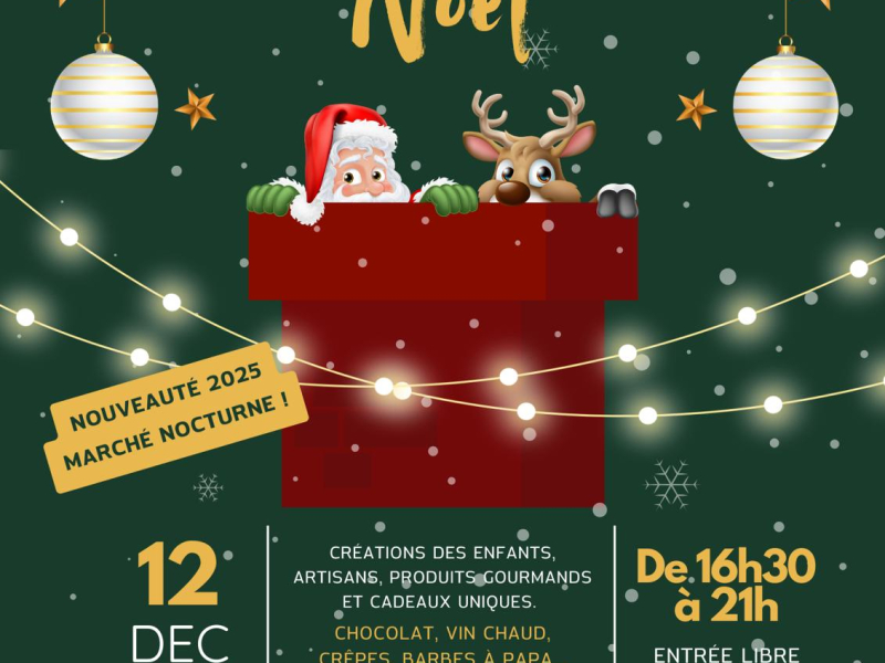 Grand marché de Noël avec des artisants, des créateurs, gastronomie, cadeaux, vente des créations des élèves de l'école, jeux en bois, photo avec le père Noël ! Petite restauration sur place, du goûter au dîner, buvette et cidre chaud.